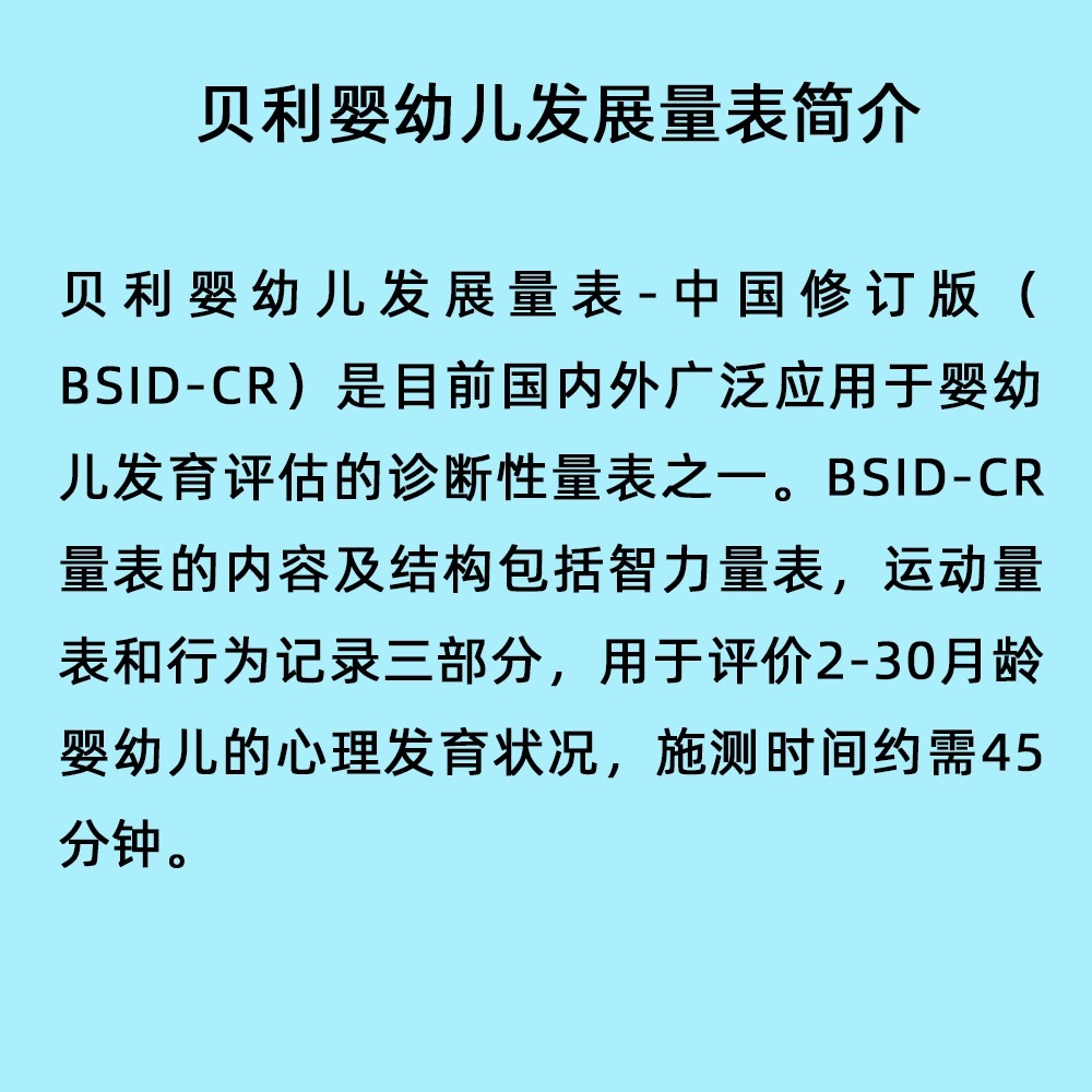 貝利嬰幼兒發(fā)展量表,貝利智力量表評(píng)估,貝利運(yùn)動(dòng)量表評(píng)估,BSID-CR工具箱